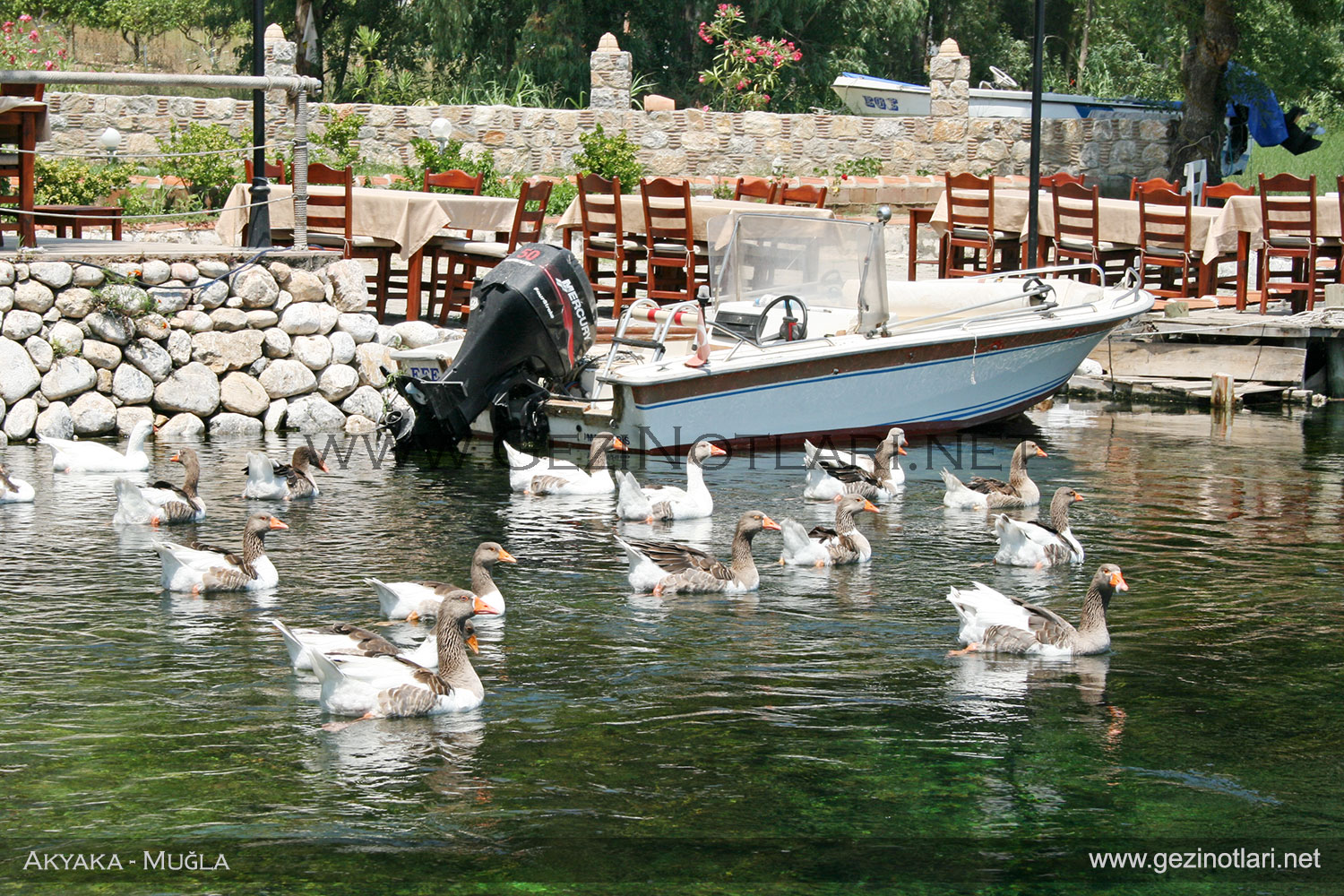Akyaka'da yapabileceğiniz en güzel şeylerden biri tekne turu. İki seçeneğiniz var; motorlu büyük kaıklarla 1 saat kadar süren azmak turu (yapmadan dönmeyin), veya tüm gün süren küçük bir mavi yolculuk. Gezi tekneleriyle, çevrenin en güzel koyları, Sedir Adası (Kleopatra plajı), Ören, Akbük gibi yerlere gidip denize girebiliyorsunuz, öğlen de uygun bir koydaki restoranda yemek yiyebiliyorsunuz. Genelde Gökova pek dalgalı olmadığı için bu gezinti sonradan eziyete de dönüşmüyor.